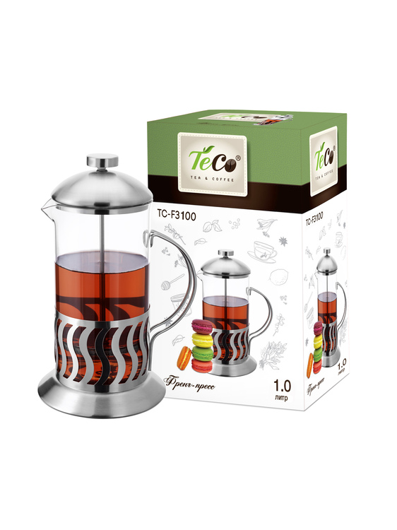 Френч-пресс из высококачественного термостойкого стекла, нержавеющей стали и пищевого пластика, легко моется, в том числе в посудомоечной машине.