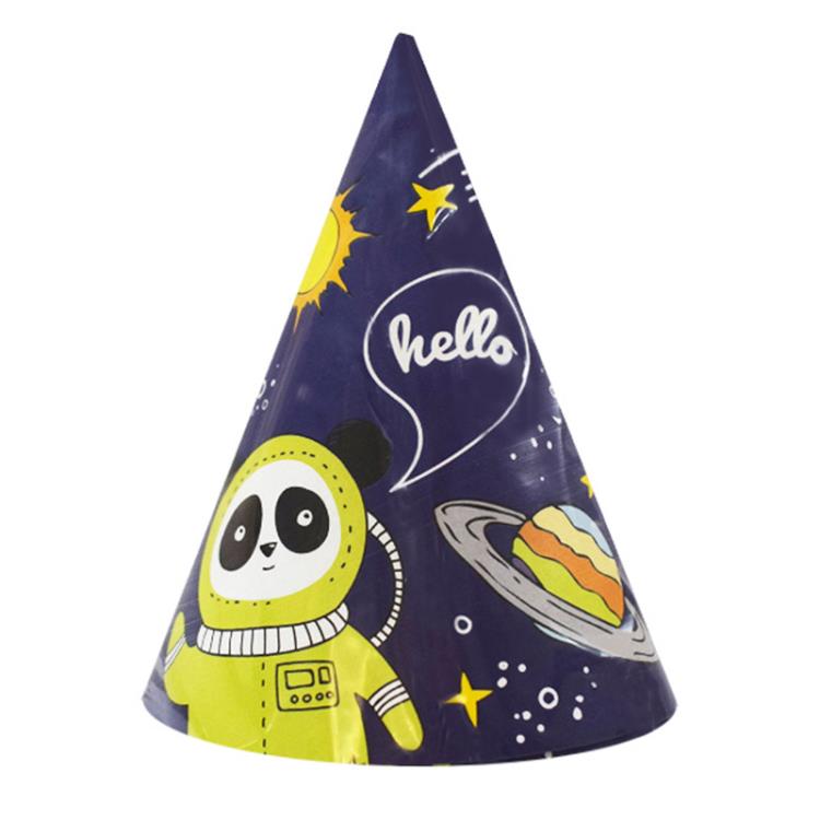 Бумажные колпачки для гостей космической вечеринки. В наборе 6 штук (рисунки одинаковые, резиночки для колпаков прилагаются).