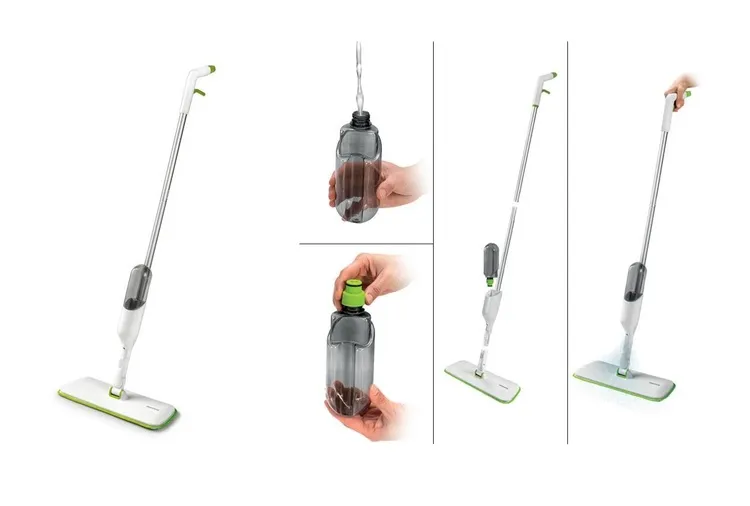 Идеально подходит для влажной и сухой уборки пола, с распылительным резервуаром для моющих средств с ручным управлением и гибким шарниром для удобной уборки в труднодоступных местах. Насадка изготовлена из качественного микроволокна с текстильной застежкой; легко снимается, подходит для стирки в стиральной машине. Удобное хранение; можно вешать на крючок, зажим или настенную вешалку ProfiMATE. Изготовлено из прочного пластика, ручка - из качественного металла; материал насадки - микроволокно (100% полиэстер).