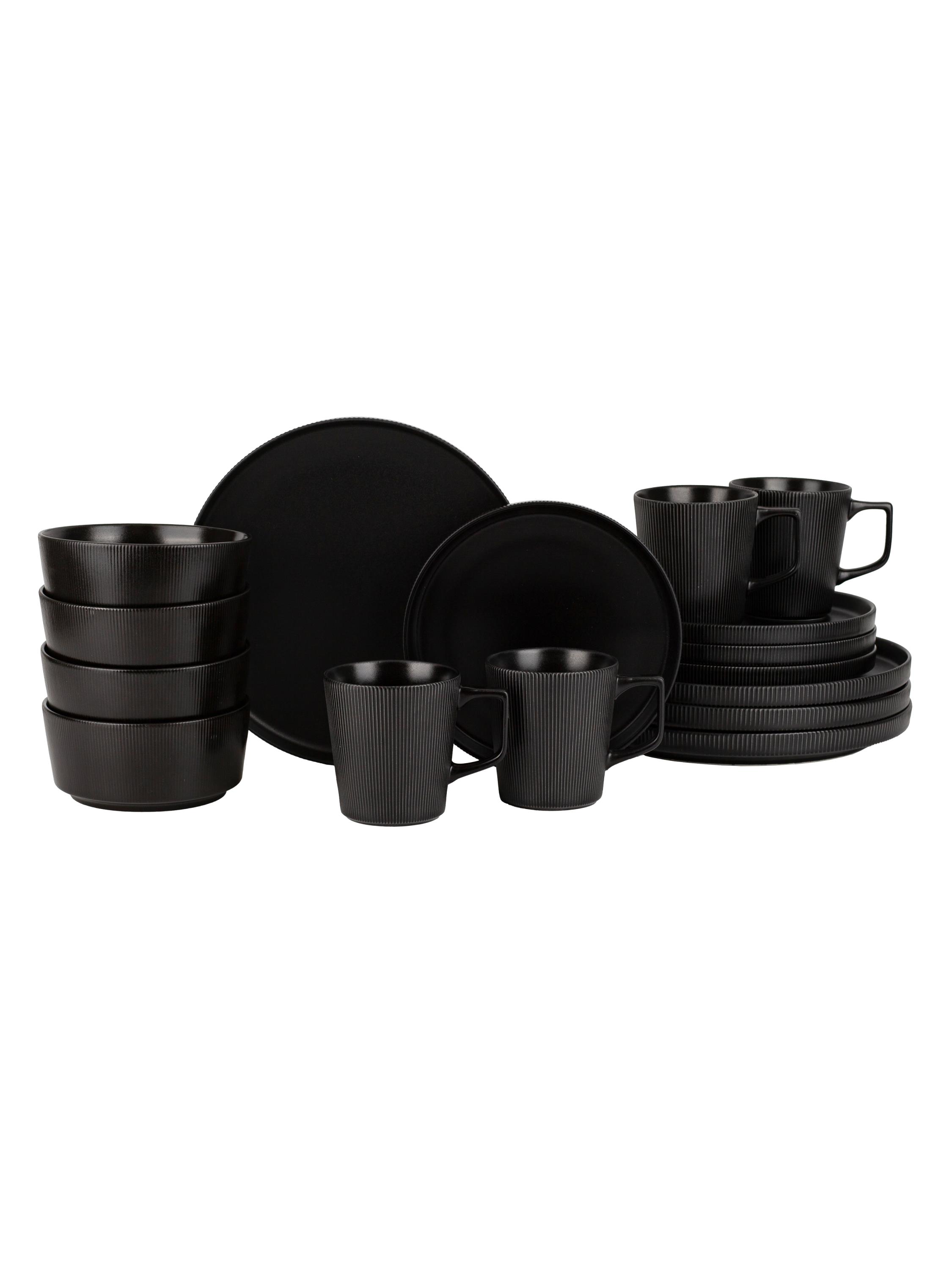 Кружка 440мл=4шт, салатник 15см=4шт, тарелка десертная 21см=4шт, тарелка обеденная 26см=4шт.