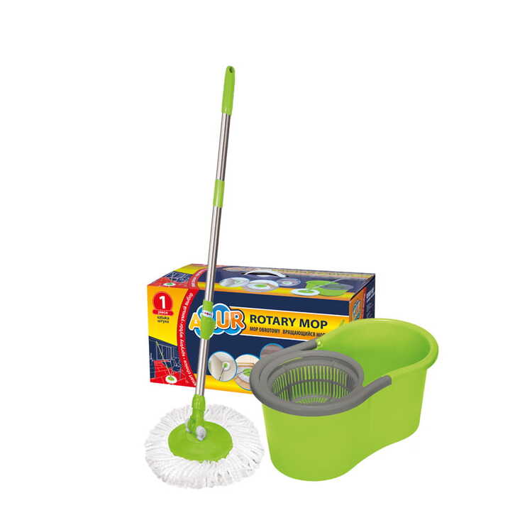 В набор входит: ведро с вращ. отжимом, швабра с насадкой из микрофибры.
