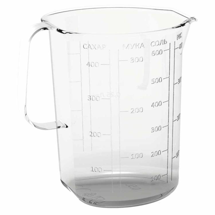 Удобная мерная кружка поможет быстро и легко измерить любые жидкие ингредиенты с помощью удобной мерной шкалы в литрах и миллилитрах – будь то вода, соус, бульон, молоко, сливки и другие жидкости. Кружка вмещает до 0,5 л. Дополнительная мерная шкала в граммах подойдет для точного измерения сухих ингредиентов, например, сахара для выпечки, без использования весов. Мерная шкала для измерения в чашках прекрасно поможет определить правильное соотношение, например, риса и воды во время приготовления вкусного гарнира.