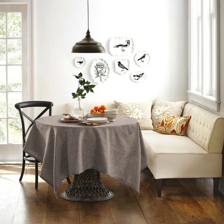 Скатерть из рогожки сделает любую кухню или столовую более уютной, создаст в помещении атмосферу тепла и гармонии. Влагозащитная пропитка в текстиле не предусмотрена, однако с него без труда выводятся любые загрязнения.