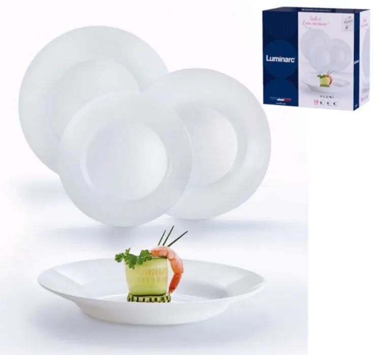 Превосходный столовый сервиз LUMINARC PLUMI белого цвета включает в себя 18 предметов, которые идеально подойдут для сервировки праздничного стола.